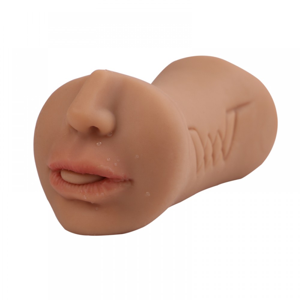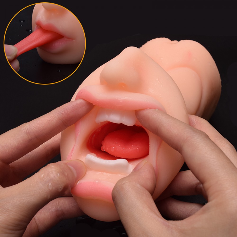 NO-135.2 ESMER VE TEN ÇİFT GİRİŞLİ AĞIZ VE DİL MOTİFLİ MASTÜRBATÖR Realistik Vajinalar